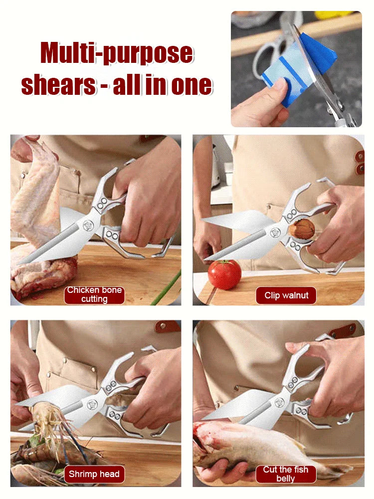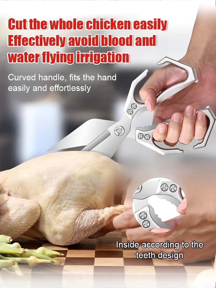 De versterkte RVS-bladen zorgen voor krachtige snedes zonder moeite — ideaal voor kip, vis, groenten of zelfs kleine botten.